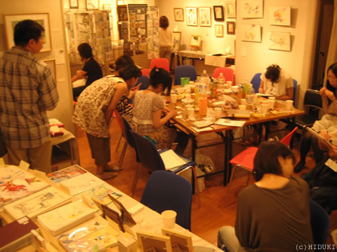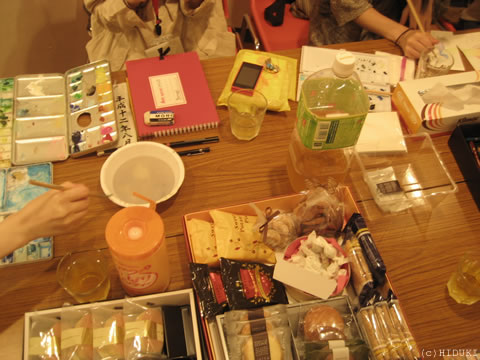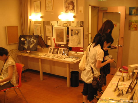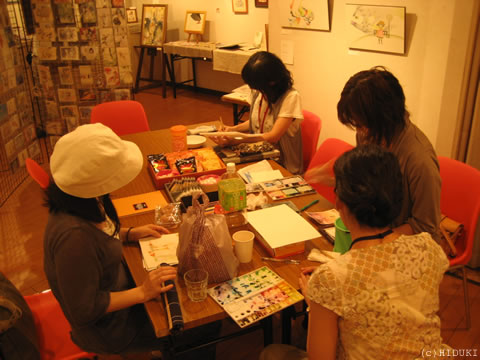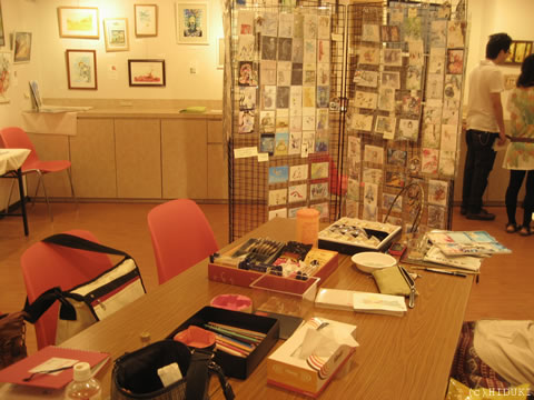2010.9.18 Sat. / 初日を終えました。 搬入作家さん約20名が集まって、12時より設営を開始、ざくざく絵が飾られていきます。 あんまり写真を撮れていなくてすみません… 展示風景は明日のレポートにてお送りします。交流会では自己紹介で、最近はまっているものを各人より申告していただいたら、ゲームから作品づくりに集中の方まで。季節柄ポケモン人口もちらほらいらっしゃいました。 本日のご参加は、まそらかなたさん、睦月レイさん、高麗さん、ウオユミさん、ふわさんとご友人の方、natsukoさん、ユルギさん、坂崎まことさん、きのあずささん、とま咲さん、五島優さん、ヨルさんとご友人の方、イコさん、くおんれいのさん、ツギさん、睛沙さん、丹羽梢さん、霞さん、飛尽でした。お描き大会でのスケッチブックの素敵な中身は、参加作家さまの日記やブログなどで紹介されていることと思います!(ですよね、皆さん!)是非ご覧になってください! 二日めの明日は、12時開場、19時閉場です。是非お越しください。 |