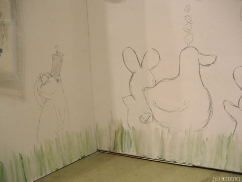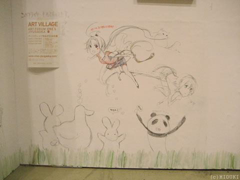 このあと更に配置換えをしたのですが写真を撮りそびれてしまいました。ちなみに下に見えていた落描きです。皆紀ひゆさん、丹羽梢さん、きゃとさん、英里さん、飛尽で描いてます。