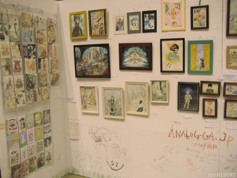 本日のミニ原画展は想像以上の大盛況ぶりでした! 冊子の残り部数から数えても、70〜80名は来てくださった計算です。メンバーでは、ユルギさん、きゃとさん、まめゆかさん、くおんれいのさん、まそらかなたさん、丹羽梢さん、睦月レイさん、五島優さん、くらんべりぃさんが、それからお馴染みアートフォーラムOne'sのオーナー松本さんも来てくださいました。